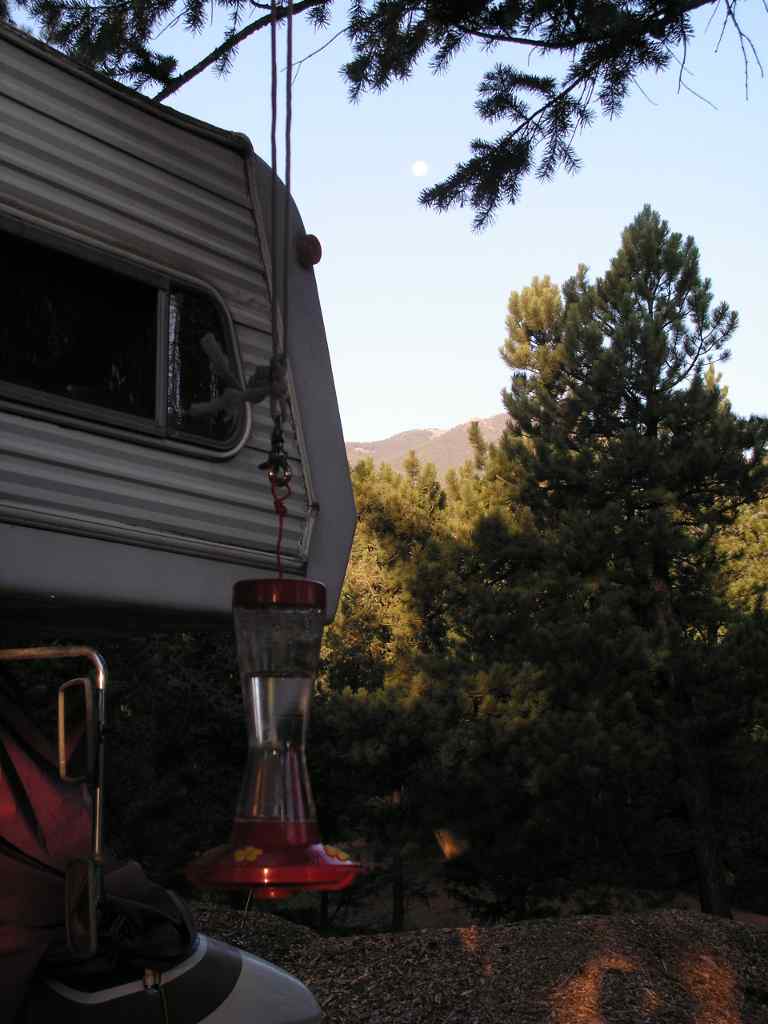 Never before have I (my third year) nor Diana (her twelfth year) experienced such wonderful weather for this festival week in August. Highs about 80*F and lows around 50*F. NO RAIN after Wednesday! Wellington Lake was extra cold (we couldn't get past our belly-buttons) but a small price to pay for such wonderful weather. For us it was as much a dressing down trip for our NuWa (we learned it's pronounced "New-Way"). It passed with flying colors. About 7mpg up and 8mpg down (expected about 6mpg average) and able to maintain the speed limit on the flats. Even up the long climb of US285 to Conifer, never slower than 35mph. The microwave we picked up from Freecycle worked great with the built-in generator so we had microwave popcorn, too!
