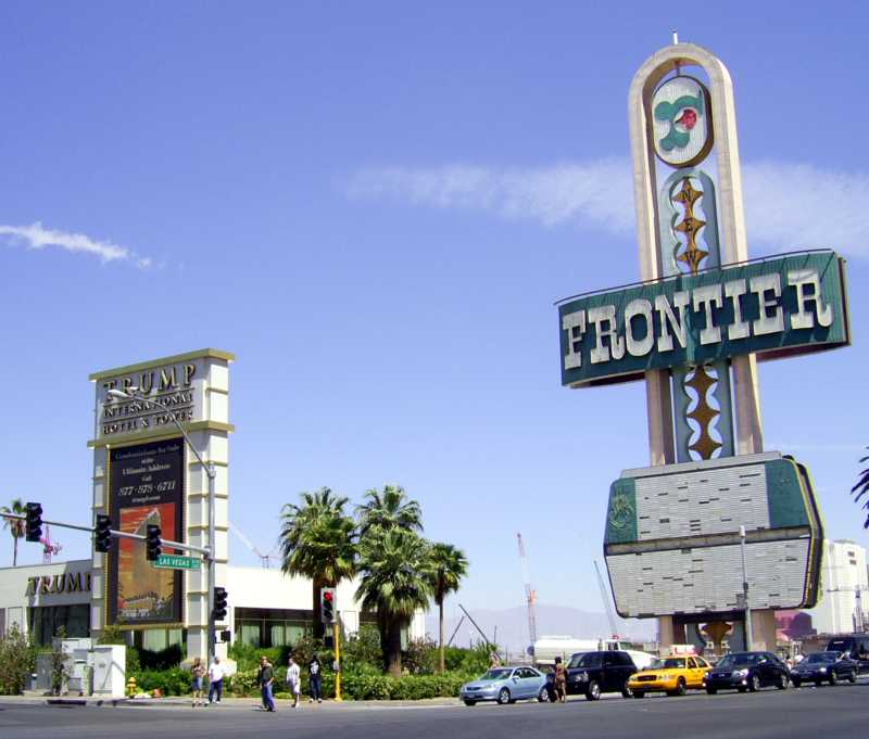All that remains of the Frontier (raised earlier this year) and the sign for the new Trump Towers (opened in April 2008) |