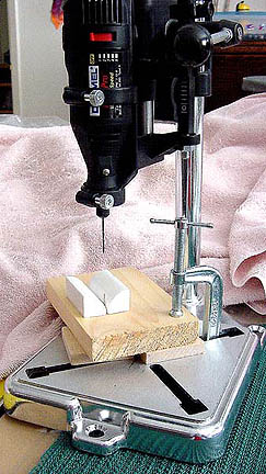 Drilling Drill Jig: I prefer to drill along the length of the bead instead of across it. If you are lucky enough to have a drill press, this kind of drill press setup will work best. Pin Vise: (For those who aren't that lucky): If you didn't dimple the bead prior to baking, use something like an Xacto blade to start a pilot hole. This helps prevent the drill bit from wandering. If it wanders, it might scratch your lovely sanded bead. After making the pilot hole, start with the smallest drill bit in your pin vise. Pull the drill bit out every once in a while and remove the loose clay, then continue drilling. If your bead is shorter than the length of the drill bit, drill until you can feel the drill about to break through, but don't let it. Pull the bit out and drill in from the opposite side at the exact spot where you felt the drill bit push. If your bead is longer than the length of the drill bit (get a longer drill bit ;-) or drill a little over halfway down the length of the bead, then tackle from the other end and hope the two "tunnels" will meet in the middle. I won't lie, this does take a bit of practice, so try the two tunnel method on some scrap beads first. |
